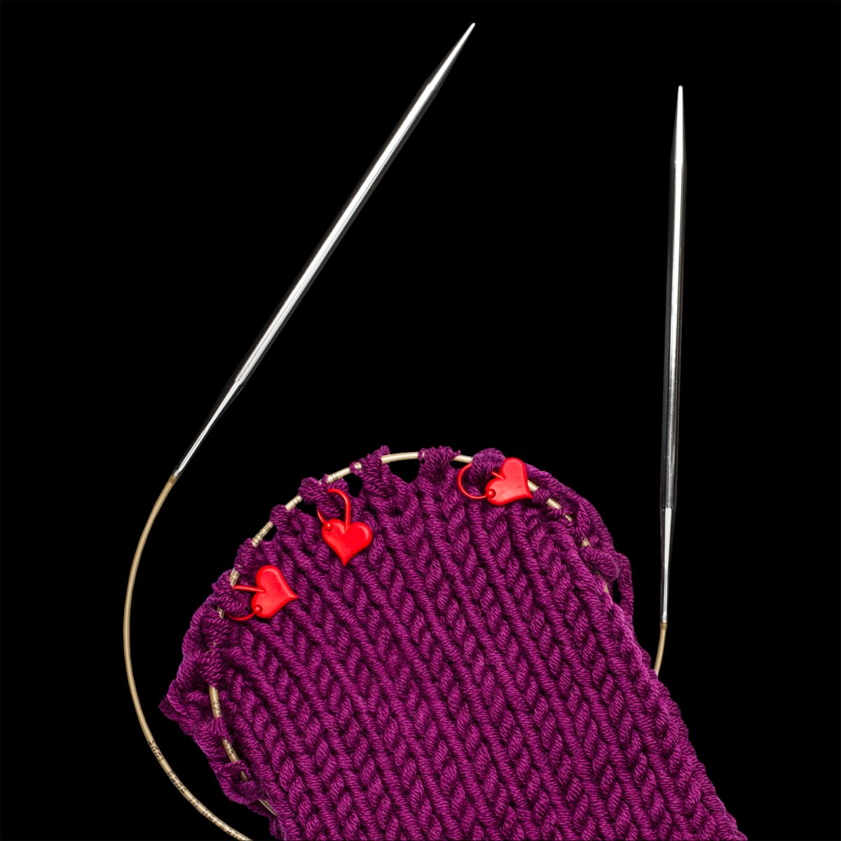 addiLove Stitch Markers, these heart-shaped markers are perfect for marking rows, stitches, and pattern changes in your knitting projects. Made from durable plastic, the markers can be easily hooked into the fabric or slid onto your needles, making them ideal for delicate work.
