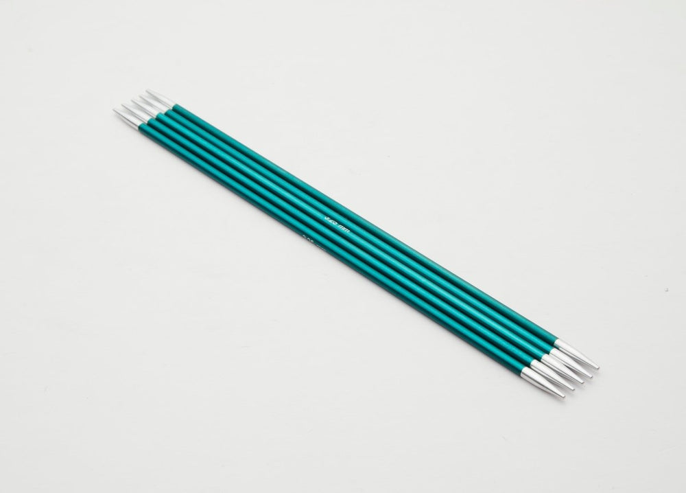 KnitPro Zing Double Pointed Needles are lightweight aluminium needles designed for knitting in the round and small circumference projects such as socks, sleeves, hats, and gloves.